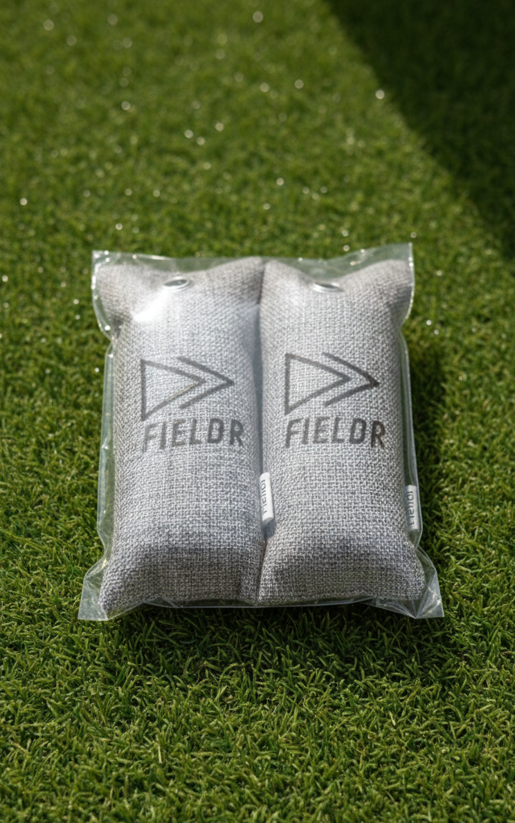 Fieldr Freshbag — Bamboo Charcoal (set van 2) Voetbalschoenen absorberen na elke training zweet en vocht, wat leidt tot hardnekkige geuren die moeilijk te verwijderen zijn. De Fieldr Freshbag is gemaakt van natuurlijk bamboo charcoal dat vocht en geur diep uit je schoenen absorbeert en neutraliseert.